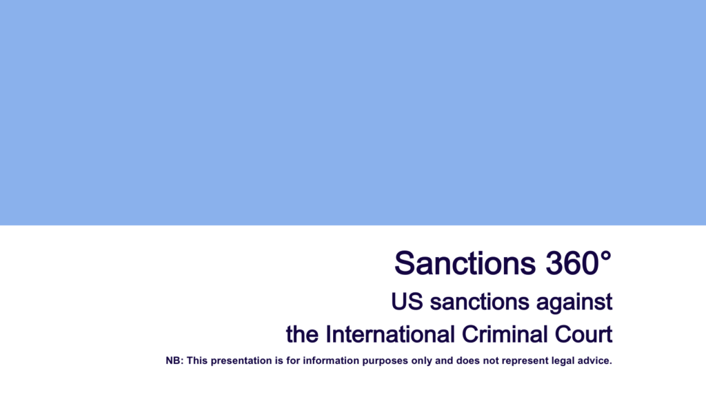 In this presentation of our series Sanctions 360° we look into a major power imposing sanctions against a highly unexpected target, the International Criminal Court. At first glance, it is surprising to see the Judges and the Prosecutors of the Court which sole purpose is to do justice to the victims of the most heinous crimes ever committed subject to the same sanctions as terrorist groups, war criminals, or drug traffickers. Yet, this situation illustrates an ever politicised rationale behind introducing economic sanctions these days and is a good opportunity to reflect on their real purpose in our changing world. Thank you for watching!