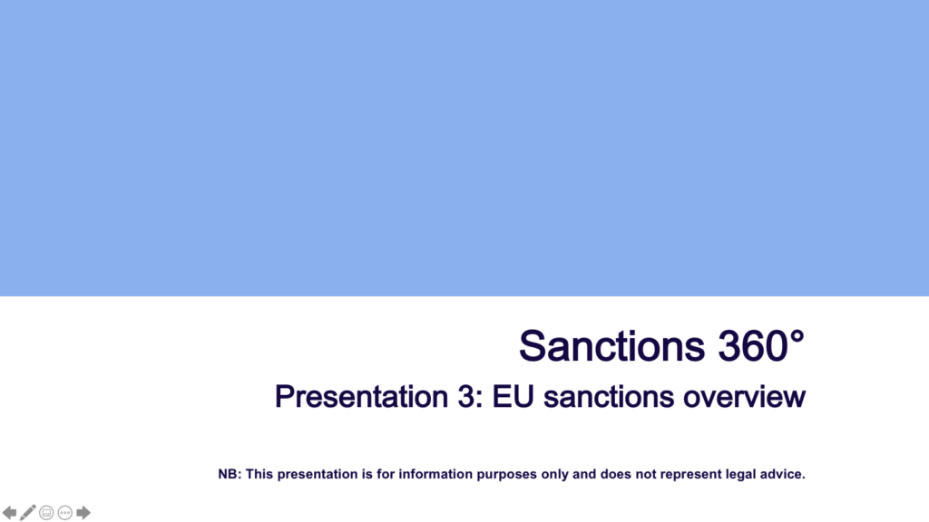 In this third video of our series Sanctions 360° we summarise the main elements of the EU international economic sanctions framework, the parties involved and the decision-making process. In the EU, the sanctions are mainly introduced at the EU (rather than at the member states’) level by means of regulations which directly effect relationships between private parties. This makes the EU economic sanctions of relevance for any person residing in the EU or any company operating in the EU market. Thank you for watching!
